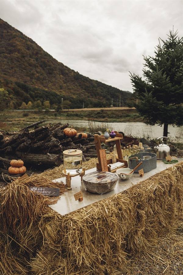 그랬다. 신랑 신부가 그들만의 다리를 건너는 순간 부부로서 하나가 되는 종합 예술을 연출했다. 시각적으로는 꽃장식에 중점을 두고 바위, 나무, 식물을 배치하여 산과 강의 특성을 표현했다. 식사는 평창의 대표 음식과 함께 시골의 잔칫날 풍경을 연출하여 하객들에게 대접했다. 마치 영화처럼 이틀에 걸친 사전 준비와 완성까지 모든 감각을 감동으로 이끈 신랑 신부였다.