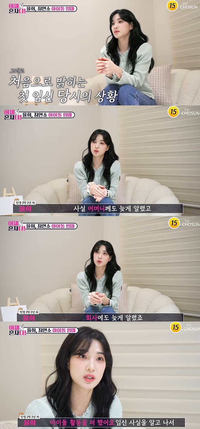 이날 율희는 처음으로 첫째 임신 당시의 상황을 토로했다. 율희는 "사실 어머니께도 늦게 알렸고, 회사에도 늦게 알렸다"며 "임신 사실을 알고나서 아이돌 활동을 더 (열심히) 했다. 친 여동생한테 먼저 알렸고, 당시 활동했던 스타일리스트 실장님만 알고 있었다"고 임신 사실을 최대한 숨기고 활동했음을 밝혔다.