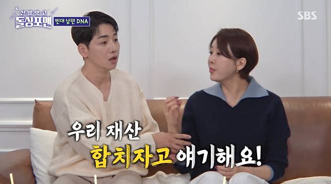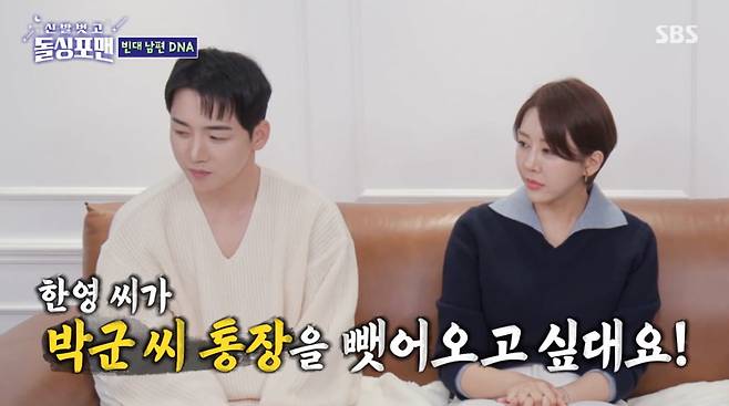 박군은 "아내에게 재산을 합치자고 했는데, 안 합치더라"고 말했다. 한영은 "박군이 사회 초년생이라 세금 같은 걸 잘 몰라서 관리는 해주는데, 재산을 합치고 싶지는 않다"고 말했다. 이어 "우리는 금고가 각각 하나씩 있다. 내가 박군에게 금고를 사라고 했다. 자꾸 내 거에 넣으려고 해서 따로 하자고 했다"고 전했다. 박군은 "내 금고에는 인감도장, 통장 2개, 여권밖에 없다. 채울 게 없다"며 웃음을 안겼다.