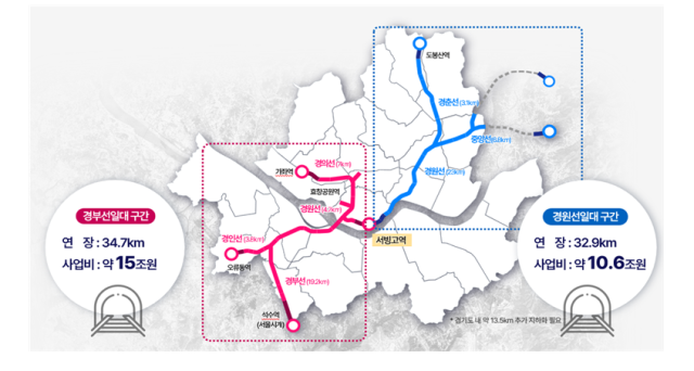 이에 서울시는 경부선 일대 34.7㎞, 경원선 일대 32.9㎞, 총 67.6㎞로 총 39개 역사를 지하화하기로 했다. 시는 다수노선을 공유하는 복잡한 철도망 특성과 지상~지하 연결 가능 여부 등 면밀한 기술적 검토를 바탕으로 지하화가 실현 가능한 대상 구간을 최종적으로 선정했다고 덧붙였다.