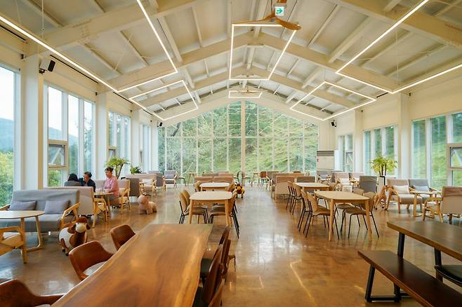 30만 평방미터에 달하는 거대한 대지에 자연 방목으로 사슴을 키우던 목장에 카페가 들어선 건 지난 연말. 카페라는 대중 공간이 생긴 덕에 푸른 대지 위에 사슴이 뛰노는 그림 같은 풍경을 많은 이가 공유할 수 있게 됐다. 커피 한 모금 입에 물고 청정한 자연과 자유로운 사슴을 눈에 담는 호사는 태백이기에 가능한 일. 감상을 목적으로 가둬둔 사슴을 마주하는 게 아니라 보는 마음도 편하다.