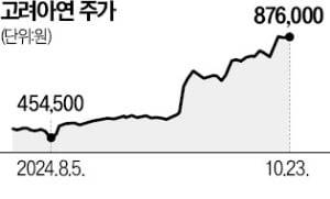 고려아연 주가는 이날 0.34% 오른 주당 87만7000원에 마감했다. 고려아연 주가는 이날 장중 88만6000원까지 올랐지만 89만원을 넘어서진 못했다. 주가가 공개매수가를 밑돌았기 때문에 상당수 주주가 이번 공개매수에 참여한 것으로 보인다.