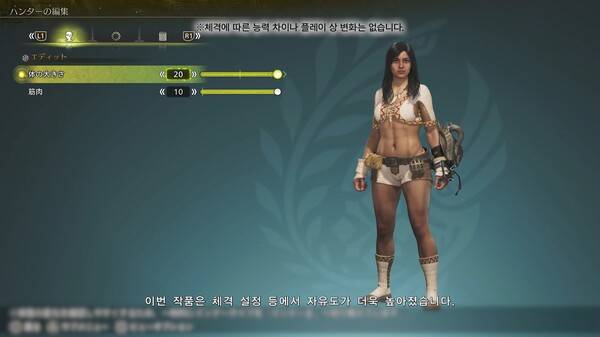 캐릭터 생성은 정식 버전에서의 기능을 전부 체험할 수 있다. 영상에서는 몬스터 헌터 월드보다 한층 다양하고 세련된 커스터마이징 외형이 눈길을 사로잡았다.