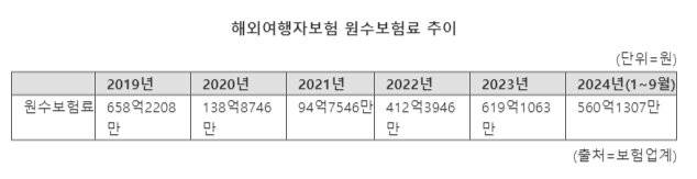 23일 보험업계 등에 따르면 지난 1~9월 누적 기준 개인 해외여행자보험을 판매하는 11개 손해보험사(메리츠화재, 한화손해보험, 삼성화재, 현대해상, KB손해보험, DB손해보험, AXA손해보험, 하나손해보험, NH농협손해보험, 카카오페이손해보험, 캐롯손해보험 등 11개사)의 원수보험료는 560억1307만원을 기록했다. 이는 지난해 연간 개인 해외여행자보험 원수보험료 619억1063만원의 90.5% 수준이다.