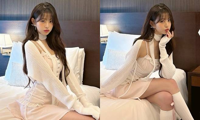 23일, 아이브 장원영이 침대 위에서 촬영한 사진 여러 장을 게시했다.