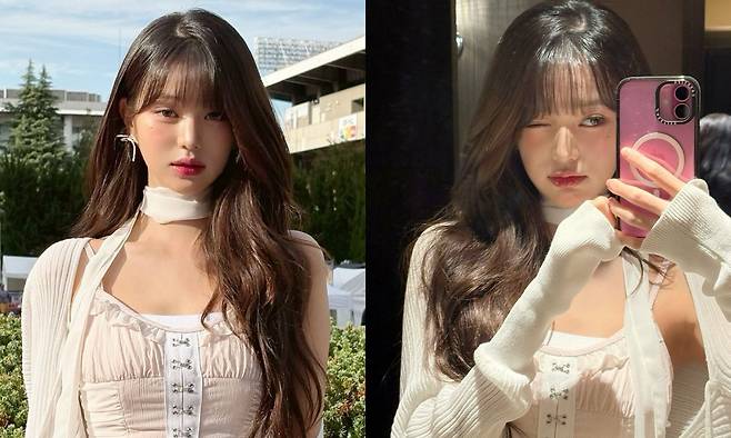장원영은 야외에서 촬영한 사진도 공개했다. 머리카락을 길게 늘어뜨린 그는 카메라를 응시하며, 신비로운 분위기를 완성했다. 이어 장원영은 '거울 셀카'를 게재했다. 그는 사랑스럽게 윙크하며, 남다른 '아이돌력'을 보여줬다.