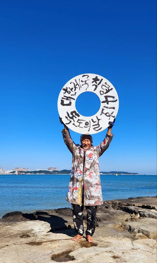 서예퍼포먼스 대가로 손꼽히는 쌍산(雙山) 김동욱 씨는 독도의 날을 하루 앞둔 24일 포항시 남구 송도동 해수욕장 방파제에서 일본정부의 독도 영유권 주장에 항의하는 퍼포먼스를 펼쳐 주목을 받았다.