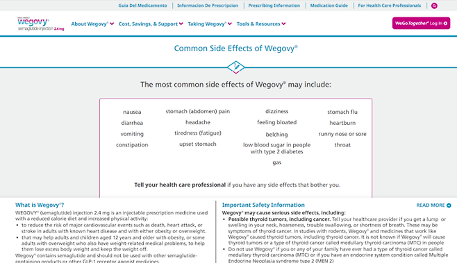 위고비를 복용하려는 사람은 부작용도 자세히 알고 있는 게 좋다. [위고비 홈페이지 캡쳐]