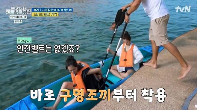 곽선영, 안전벨트 찾다 카약 타니 돌변…이주빈과 첫 동굴 수영 만끽 ('텐트밖은유럽')