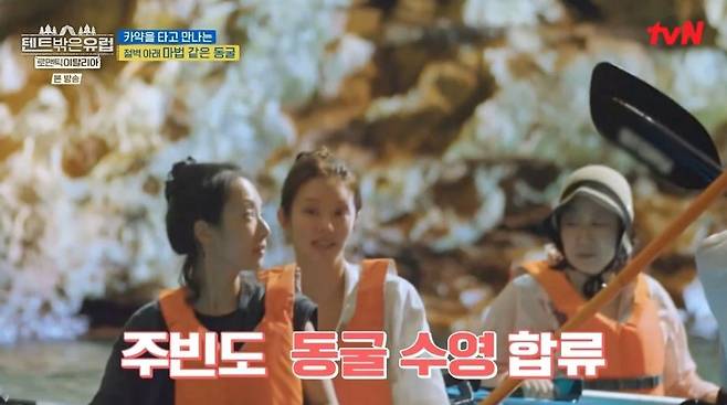 24일 방송된 tvN '텐트 밖은 유럽-로맨틱 이탈리아'(이하 '텐트밖')에는 라미란, 곽선영, 이주빈, 이세영이 카약 투어로 마법 같은 동굴을 만났다.