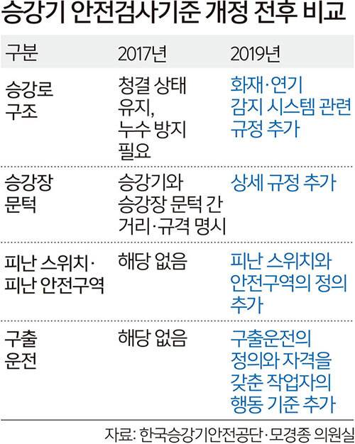 승강기 사고가 끊이지 않으면서 안전검사기준이 2019년 대폭 강화됐지만, 신축 아파트엔 기존 기준이 적용된 것이다.
