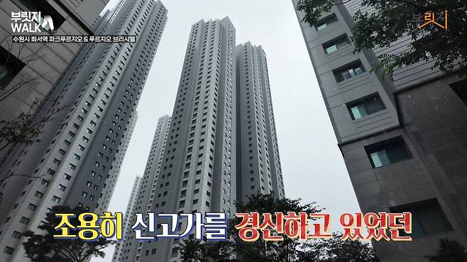 두 번째로 걸어볼 단지는 '화서역 파크푸르지오'인데요. 이 단지가 유명해서 부릿지도 작년에 온 적이 있어요. 바로 영혼까지 끌어모은 용적률 때문입니다. 화서역 파크푸르지오는 용적률 499%로 지어졌어요. 준주거지역 상한인 500%에서 1% 모자란 수준입니다. 건물이 높고 빽빽해 일명 '닭장 아파트'라는 오명이 붙기도 했는데요. 단지로 들어가면 더 체감이 될 것 같아요.