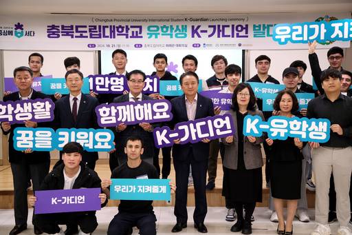 충북도는 ‘충북형 K유학생 제도’를 시행한다. 외국인 유학생 유치는 물론 학업·취업·정주 지원체계를 구축해 가급적 이른 시기에 외국인 유학생 1만명 시대를 열겠다는 것이다. 도는 우선 외국인 유학생의 안정적인 생활을 위해 ‘K가디언’ 제도를 도입했다. 학교 단위 수준이 아닌 민·관·산·학 협력을 통해 유학생의 정착을 돕는 후견인을 양성한다는 내용이다. 이달 21일에는 충북도립대에서 지역 주민 9명과 유학생 18명을 1대 2로 연계하는 K가디언 발대식이 열렸다. 이들은 유학생과 개인적으로 연락하고 만나며 지역탐방, 생활정보 공유, 진로상담을 비롯해 마을 환경정화 등의 지역사회 활동에 참여한다.