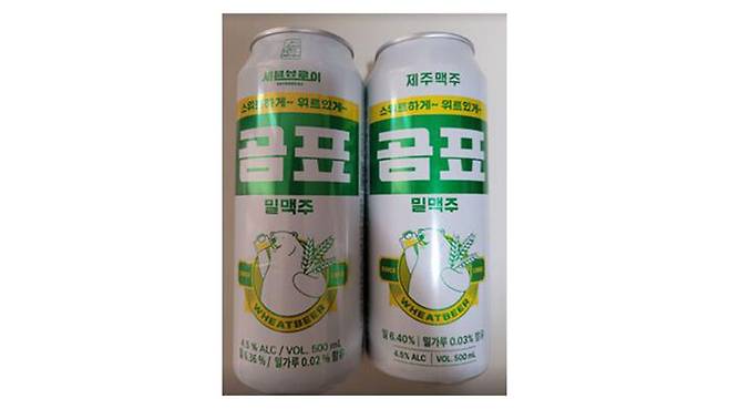 ▲ 세븐브로이가 만든 곰표밀맥주(왼쪽)와 제주맥주가 만든 곰표밀맥주