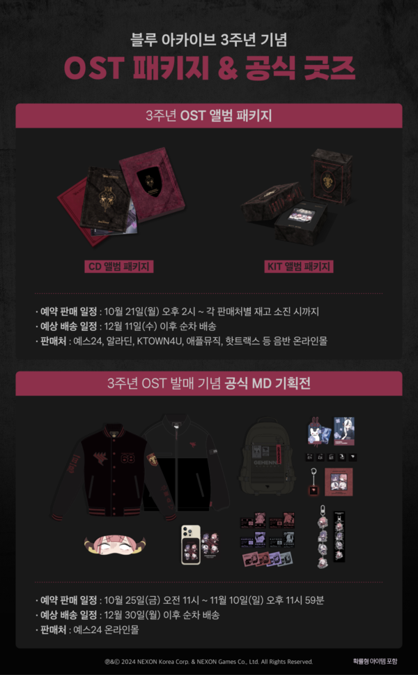 넥슨게임즈는 25일 "선생님과의 소중한 3주년을 기념하기 위해 올해도 OST 기념 앨범 패키지와 공식 MD 기획전을 준비했다"며 굿즈 발매 소식을 알렸다.