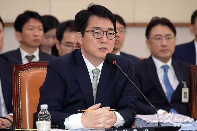 김건희 여사의 '공천개입 의혹'을 제기한 강혜경 씨가 21일 서울 여의도 국회 법제사법위원회의 대검찰청 대상 국정감사에 증인으로 출석해 의원 질의에 답변을 하고 있다. 강씨는 김영선 전 국민의힘 의원의 회계 책임자이자, 과거 명씨가 주도한 여론조사 실무를 맡은 인물이다. 그는 '명씨가 지난 대선 당시 윤석열 대통령에게 유리하도록 여론조사를 조작한 대가로 김 전 의원이 공천을 받아냈다'는 폭로를 이어가고 있다. 윤창원 기자