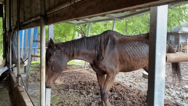 어쩌면 말산업이 가장 외면하고 싶은 '하수구' 같은 역할을 자처해온 곳. 이처럼 보내졌을 때 퇴역마의 전후가 어떤지 알려줄 말이 여기 공주 불법 말 농장에 있었다.