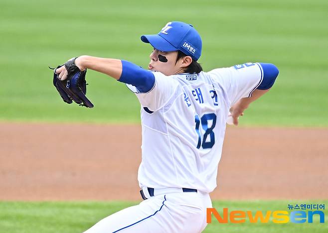 2.1이닝 동안 78구를 던진 원태인은 6피안타 3사사구 2탈삼진, 6실점을 기록했다. 1차전에서 5이닝 66구 무실점 완벽투를 펼친 뒤 비로 등판을 마쳤던 원태인은 4차전 필승을 다짐했지만 완전히 붕괴했다.(사진=원태인)