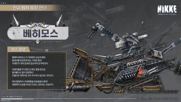 신규 보스 베히모스가 출시된다. 헬레틱 베히모스가 거대화한 모습의 랩쳐로 중장비가 연상되는 외형이 특징이다.