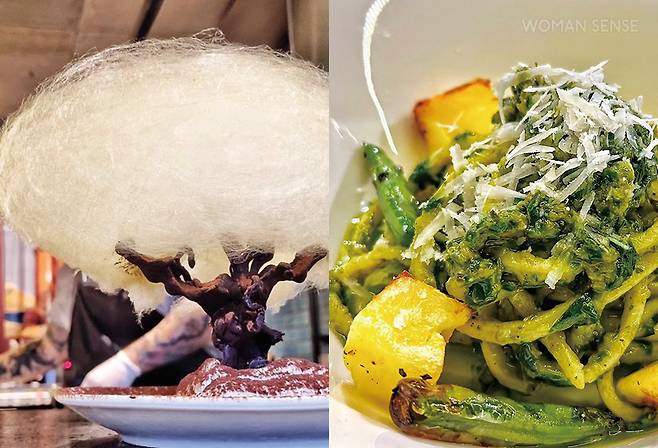 권성준 셰프가 처음으로 요리 일을 시작한 곳은 나폴리 이스키아섬에 있는 미슐랭 레스토랑이다. 현지의 아름다운 바다, 열정적인 분위기를 모티브로 만든 식당인 만큼 정통 나폴리 생면 파스타를 비롯해 다양하고 창의적인 메뉴를 선보인다. 오픈 키친에서 직접 면을 뽑고 삶고 조리하는 모습을 구경할 수 있는데, 막 뽑은 생면은 면발이 부드러우면서도 쫄깃해 식감을 레벨업한다는 평이다. 권 셰프는 계절마다 한 지역을 테마로 코스 요리를 선보이는데, 스스로의 성장을 위해 7코스 구성 메뉴를 2개월에 한 번씩 변경한다고. 따라서 코스가 바뀔 때마다 방문하고 싶은 레스토랑, 아이디어와 디테일이 넘치는 레스토랑으로 꼽힌다.