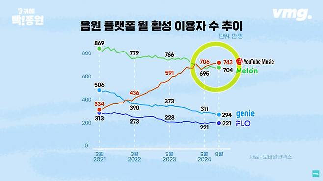 우리나라에서는 유튜브 뮤직은 이제 명실상부 시장 1위 음원 서비스 플랫폼입니다. 사용자수로 따졌을 때 전체 시장의 30% 정도를 차지하며 부동의 1위였던 멜론을 제친 지 꽤 됐습니다. 국내 사용자만 700만 명 이상, 해외 사용자는 이보다 몇 배는 더 많다 보니 우리나라 저작권 협회 측이 경험을 한 겁니다. 글로벌 플랫폼을 통해 벌어들일 수 있는 수익이 굉장히 많다는 것을요.