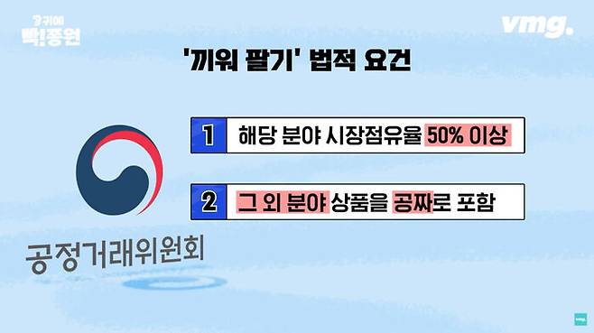 이렇게 누이 좋고 매부 좋은 상황인데, 공정위는 왜 유튜브 뮤직을 제재한다고 하는 걸까요? 사실 유튜브 뮤직이 음원 업계 1위를 먹으면서 눈에 띄기 시작했습니다. 공정위는 그런데 이 1위를 차지한 이유가 유튜브의 ‘끼워팔기’ 때문이라고 판단하고 있습니다. 지배적 사업자의 끼워팔기는 자본주의 사회에서 엄격히 금지되고 있는 불공정 행위 중 하나입니다. 그런데 1+1 한다고 끼워팔기라고 안 하듯, 이 끼워팔기를 판단하는 엄격한 법적 기준이 있습니다. 일단 끼우는 주체가 해당 분야 시장에서 50% 넘는 점유율을 차지하고 있어야 합니다. 그리고 전혀 상관없는 분야의 상품을 거의 무료에 가깝게 묶어서 팔 때 ‘끼워팔기’가 성립되는 겁니다. 아직 결론이 난 건 아니기 때문에 논란은 있습니다.