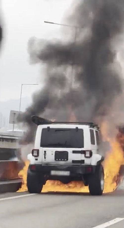 [영상] 강변북로 달리던 SUV 화재…인명피해 없어