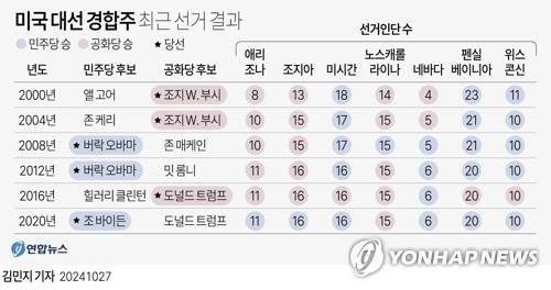 [그래픽] 미국 대선 경합주 최근 선거 결과