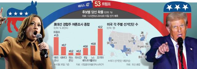 ◇‘샤이 해리스’ 등장에 희망 거는 민주=전반적으로 열세에 놓인 해리스 캠프에서는 이번 대선에서 ‘샤이 해리스’가 등장할 가능성에 실낱같은 기대를 품고 있다. 트럼프를 싫어하는 공화당의 온건한 유권자, 낙태권 문제에 예민한 여성들이 해리스가 마지막까지 공략하는 그룹들이다. 해리스를 지지하고 있는 바버라 콤스톡 전 공화당 하원의원은 “조용히 해리스에게 투표할 침묵의 여성그룹이 있다”고 자신했다. 실제로 2022년 중간선거는 민주당의 결집력을 증명한 선거였다. 대부분의 여론조사에서 공화당이 압승하는 ‘레드웨이브’가 예상됐지만 선거 직전 있었던 대법원의 낙태권 폐기 판결 등에 대한 반발로 중도층과 여성들이 결집하며 민주당이 선전했다. 한 여론조사 전문가는 “공화당 경선에서 트럼프와 맞섰던 니키 헤일리 전 유엔대사를 지지한 그룹의 표심도 무시할 수 없다”면서 “해리스 입장에서는 그들이 반(反)트럼프 투표를 해주길 기대할 것”이라고 말했다.