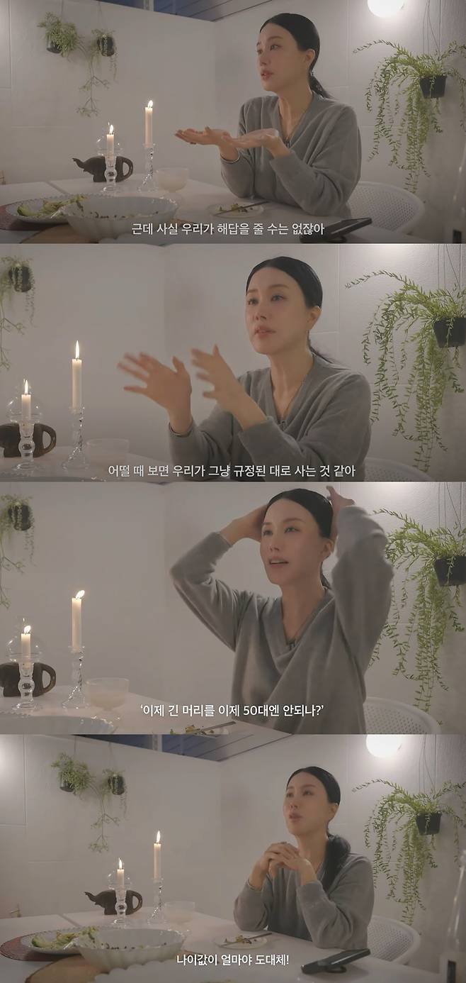 이어 엄정화는 "어떨 때 보면 우리가 그냥 규정된 대로 사는 것 같다. 30살 때는 이렇게 해야 되고, 40살 때는 이렇게 입어야 되고"라며 "심지어 50살 되면 머리를 곱슬머리 해야 되는 줄 알았다. '긴 머리는 이제 50대가 되면 안되나?' 이런 바보같은 생각을 한 적 있다. 정해놓은 대로 구겨 놓을 수 없다"며 깊은 속마음을 털어놓았다.