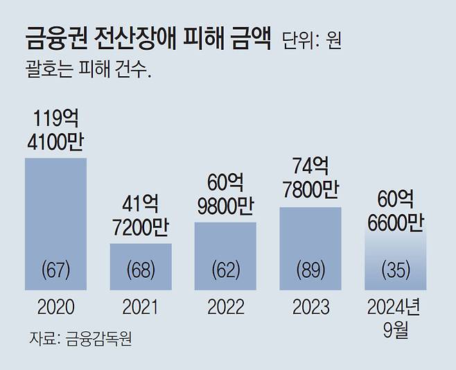 [단독]금융권 전산장애 피해액 5년간 350억… “美 주간 거래 등 연계 서비스 영향”