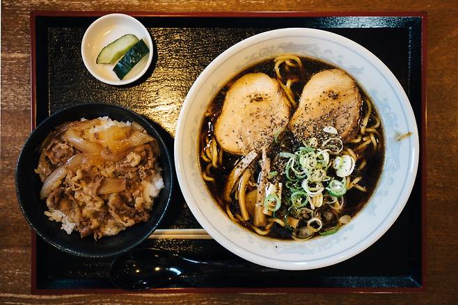 도야마의 명물, 블랙라멘은 이름값을 한다. 국물이 정말 새까맣다. 보통 라멘은 라멘만 먹는 것이 일반적인데, 블랙라멘은 밥을 곁들여 먹어야 한다. 염도가 한 끼 식사라기보단 반찬에 가깝기 때문이다. 1947년 전쟁 이후, 먹을 것이 부족했던 도야마 사람들은 배를 불리기 위해 라멘을 먹은 뒤, 그 국물에 밥을 말아 먹었다고 한다. 그래서 국물의 염도를 올리기 위해 간장을 잔뜩 부어 끓인 것이 바로 블랙라멘의 시초다.