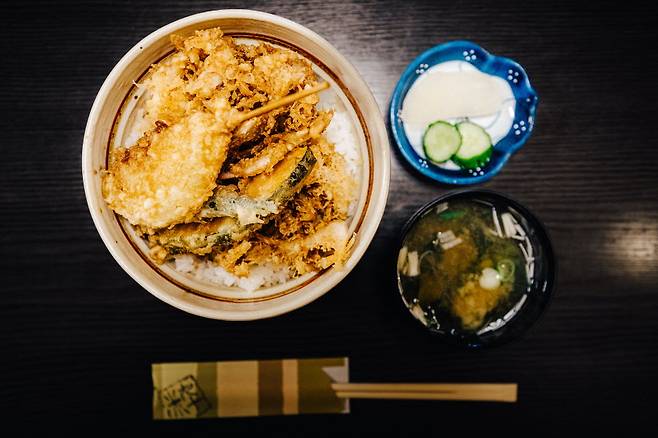 도야마만의 보석, 시로에비(シロエビ)는 '돗대기 새우'라고 불리는 작고 하얀 새우다. 도야마만에서 대량으로 어획되어 주로 말리거나 튀겨 먹는다. 기본적으로 도야마는 쌀이 워낙 맛있는 지역이라 텐동(튀김덮밥)으로 먹으면 완벽한 궁합을 느낄 수 있다.