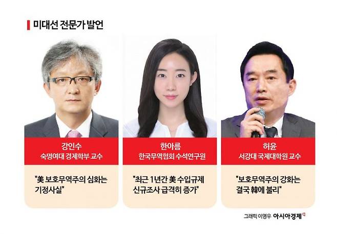 통상 전문가들은 미국의 보호무역주의 심화 기조가 당장 한국에는 반사이익으로 작용할 수 있지만, 결국엔 부정적 영향이 더 클 것으로 우려했다. 한 연구원은 "미국의 보호조치가 대부분 중국을 겨냥하고 있고 중국의 제3국 경유 우회 수출에 대한 규제가 확대되고 있어 단기적으로 중국산 대체에 따른 반사이익을 기대할 수 있는 품목도 일부 존재한다"면서 "실제 미 무역대표부(USTR) 보고서에 따르면 2018년 대중국 301조 관세 부과 이후 미국의 수입처가 다변화하면서 멕시코 등 제3국이 중국을 대체했으며, 특히 반도체와 배터리 등 첨단산업 분야에서 대한국 수입이 증가한 바 있다"고 설명했다.