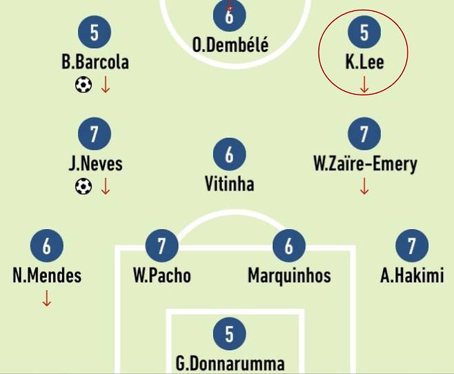 프랑스 유력지 '레퀴프'도 PSG가 3-0으로 압승했음에도 이강인, 브래들리 바르콜라, 잔루이지 돈나룸마 3명에게 최저 평점이 5점을 줬다. 3-0으로 이겼지만 이 3명의 선수가 경기에 끼친 영향력은 크게 없었다고 평가한 것이다.