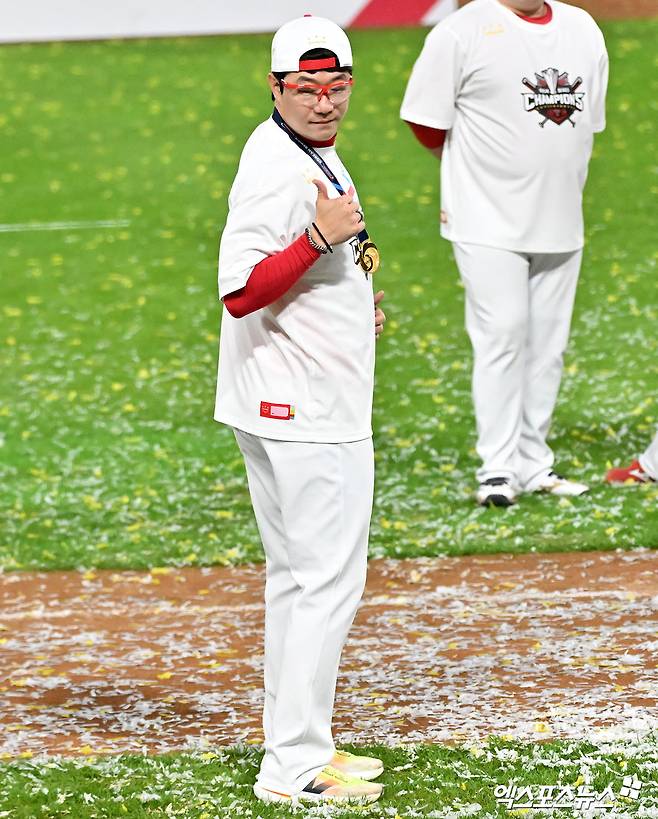 (엑스포츠뉴스 광주, 김한준 기자) 28일 오후 광주기아챔피언스필드에서 열린 '2024 신한 SOL Bank KBO 한국시리즈' 삼성 라이온즈와 KIA 타이거즈의 5차전 경기, KIA가 삼성에 7:5로 승리하며 7년 만에 통합 우승을 차지했다.