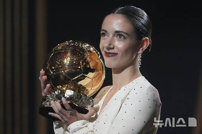 [파리=AP/뉴시스] FC 바르셀로나의 아이타나 본마티(스페인)가 28일(현지시각) 프랑스 파리 샤틀레 극장에서 열린 제68회 발롱도르(골든볼) 시상식에서 2년 연속 여자 부문 발롱도르 상을 받고 포즈를 취하고 있다. 남자 부문에서는 맨체스터 시티(잉글랜드)의 로드리(스페인)가 수상했다. 발롱도르는 프랑스 축구 전문지 프랑스풋볼이 주관하는 세계 최고 권위의 축구 시상식이다. 2024.10.29.