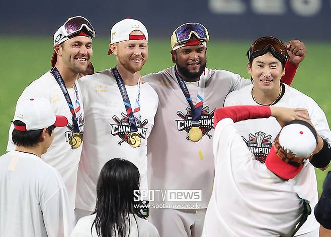 [스포티비뉴스=광주, 곽혜미 기자] 부상을 딛고 한국시리즈 선발 등판을 하며 헌신했던 네일이 드디어 우승의 기쁨을 누렸다.