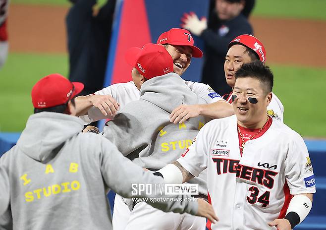 '2024 신한 SOL뱅크 포스트시즌' KIA 타이거즈와 삼성 라이온즈의 한국시리즈 5차전이 28일 오후 광주 기아챔피언스필드에서 열렸다. 이날 경기에서 KIA는 7-5 짜릿한 역전승을 거두며 통산 12번째 우승을 거머쥐었다.