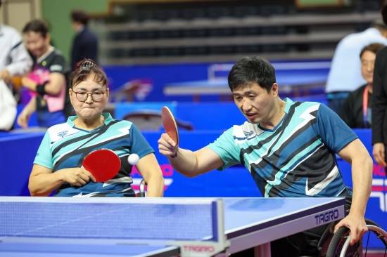 파리 패럴림픽에서 세계 1위를 꺾고 패럴림픽 5번째 정상에 오른 탁구 김영건(40·광주)도 박상은(57·광주)과 출전한 혼합 복식 체급 총합10 경기 8강에서 경북팀 김인수(54), 신미경(57)조에 게임 스코어 0-3으로 패했다.