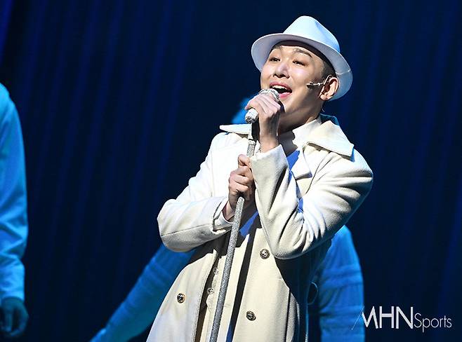 (MHN스포츠 이현지 기자) 뮤지컬 배우 김호영이 29일 오후 서울 구로구 디큐브 링크아트센터에서 진행된 뮤지컬 '광화문연가' 프레스콜에서 열연을 선보이고 있다.