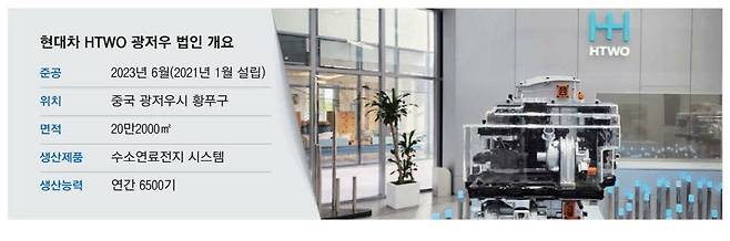 중국 광둥성 광저우시 황푸구에는 현대자동차의 수소연료전지 중국 생산법인인 'HTWO'가 자리 잡고 있다.