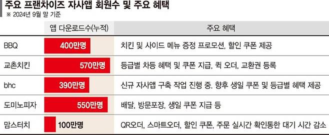 특히 최근 배달 플랫폼의 수수료 인상으로 자영업자의 부담이 커지면서 프랜차이즈 본사들은 자사앱을 통한 가맹점주의 부담 완화 효과를 적극 홍보하고 있다.