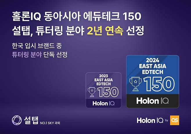명문대생 과외 플랫폼 '설탭'이 글로벌 시장조사 기관 홀론아이큐(Holon IQ)의 '2024 동아시아 에듀테크 150'에 선정됐다고 30일 밝혔다. 설탭은 지난해에 이어 2년 연속 선정됐다.