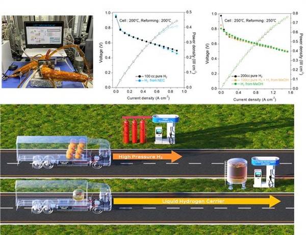 또한 200°C 이상에서 작동 시, 고순도 수소가 아닌 메탄올과 수소저장유기물(LOHC)를 직접 연료전지에 공급할 수 있어 효율이 높아지고, 가솔린 등의 연료 인프라를 그대로 활용 가능하다는 장점까지 확보돼 높은 경제성과 지속성을 제공할 수 있다는 설명이다.