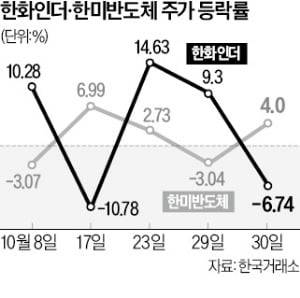 한미반도체 주가가 뛰면서 한화인더 투자 심리가 식었기 때문으로 풀이된다.