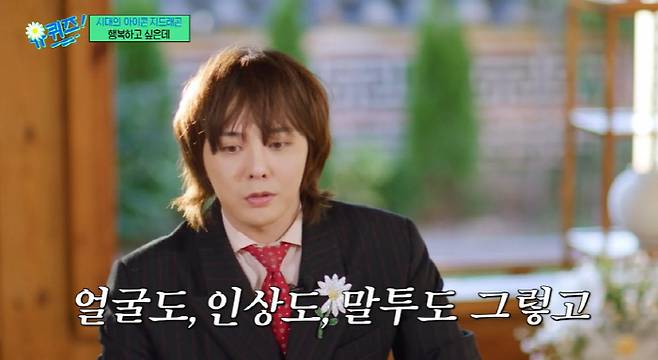 현재는 모든 것이 지나가면서 머릿속이 많이 정리가 됐다는 지드래곤은 "예전 그 나이에 할 수 있는 경험을 해본 거 같다. 지금은 내 건강을 위해서라도 유하게 하는 편이다. 그렇게 하다 보니까 얼굴도, 인상도, 말투도 예전에 비해서 바뀐 게 있을 거다. 되게 날카로운 모습은 아니지만 개인적으로는 좋다"고 전했다.