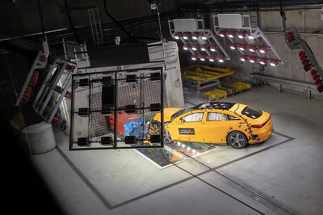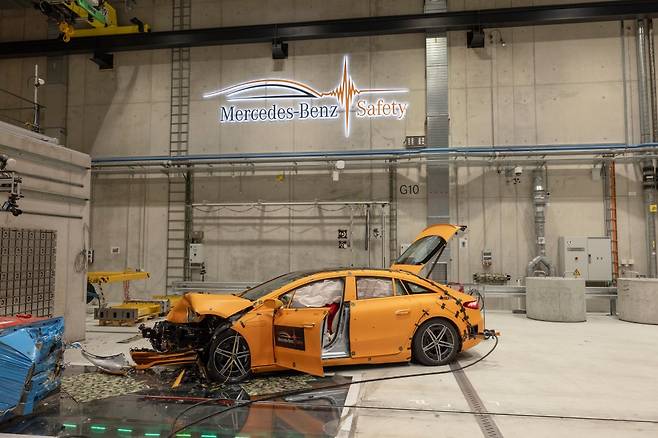 [르포] “500톤 콘트리트 벽으로 쾅” 벤츠 EQS 충돌 시험 직접 보니