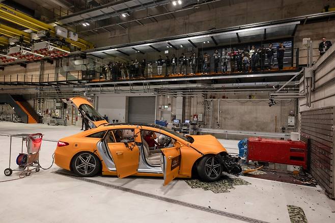 놀라운 장면은 지난 22일 독일 진델핑겐에 위치한 벤츠 차량 안전 기술 센터에서 벌어진 일이다. 충돌 전, 충돌, 충돌 후까지 모두 책임진다는 철학 아래 연구원들은 체계적인 안전 검사와 결과를 분석하며 데이터를 쌓는 과정을 볼 수 있었다. 내연기관, 전동화 구분하지 않고 안전에 대해서는 어떠한 것과 타협 없이 엄격한 기준을 세워야 한다는 이야기를 들으며 제품에 대한 강한 자신감도 엿볼 수 있었다.