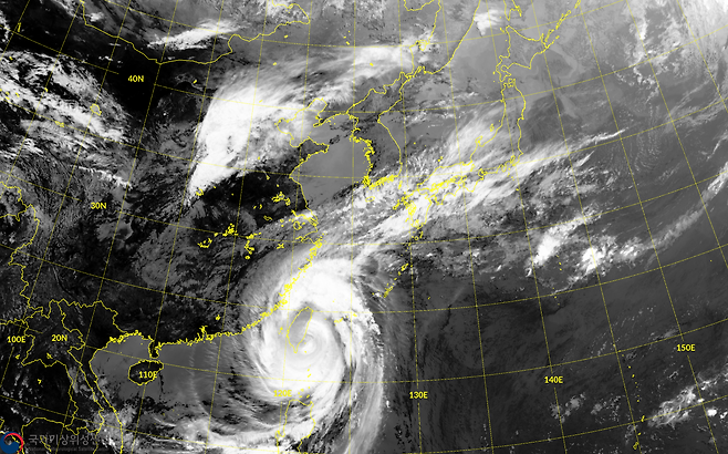 위성영상을 보면 태풍이 동반한 거대한 소용돌이 구름을 확인할 수 있습니다.